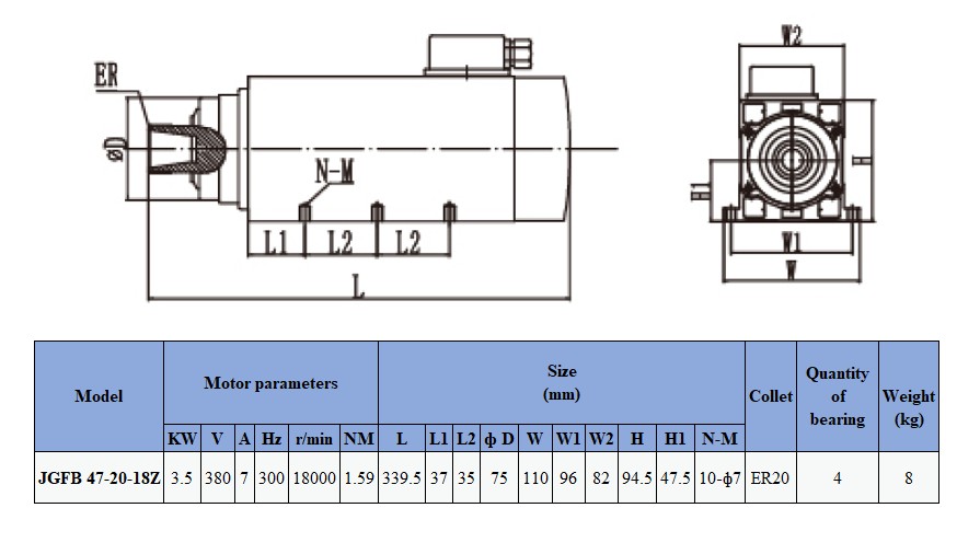 - Тип шпиндел: Квадратен корпус, електромеханичен, въздушно охлаждане